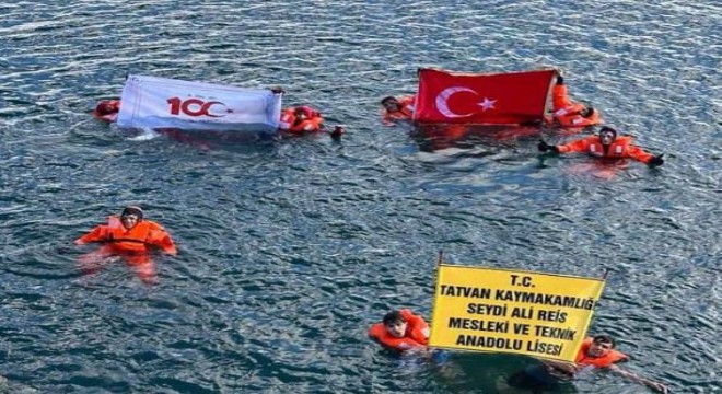 Tatvan ilçesinde bulunan Seydi Ali Reis Mesleki ve Teknik Anadolu Lisesi öğrencileri, 100. yıla özel Van Gölü’nde al bayraklı etkinlik düzenledi. Büyük beğeni toplayan görüntüler havadan da görüntülendi.