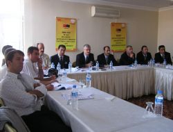 İnsan kaynaklarının mesleki eğitim yoluyla geliştirilmesi projesi İKMEP'in Milli Eğitim ve yüksek öğretim kurumları ile ortaklaşa yürütüldüğü belirtilirken, bu projenin, Avrupa finans kaynaklı olduğu, bu çalışmanın iş hayatına imkan tanıyan mesleki alanda eğitim gören öğrencilerin Avrupa ülkelerindeki standartlara uyumluluğunu sağlamak amacını güttüğü kaydedildi. Toplantı slayt gösterisi ile desteklendi.