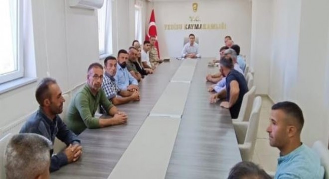 Yedisu ilçe Kaymakamı Mehmet Kaya’nın başkanlığında, KKKA Hastalığına karşı alınacak tedbirlerin değerlendirdiği bir toplantı düzenlendi. Toplantıya İlçe Jandarma Komutanı J. Yzb. Dr. Emre Cihan Ateş, İlçe Hekimi Dr. Oğuzhan Türktan, İlçe Tarım Müdürü Vekili Muhammed Ali Güneş ve muhtarlar katıldı.