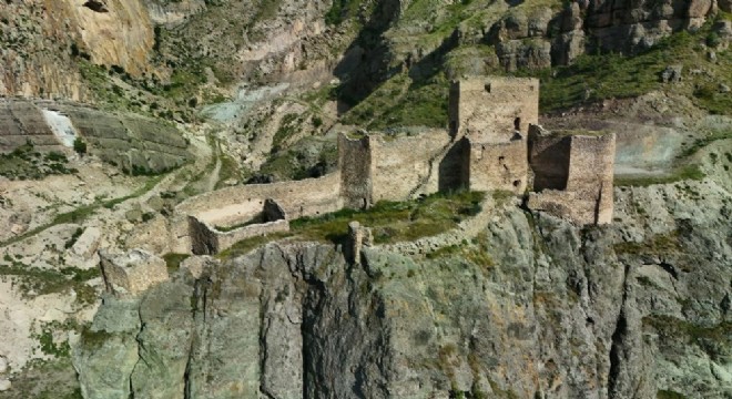 Uzundere ilçesindeki Engüzek Kalesi, eşsiz manzarasıyla dikkat çekiyor.