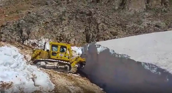 Erzincan İl Özel İdaresine bağlı ekipler 3 bin 500 rakımlı Melenkoç yaylasında yer yer 5 metreyi bulan karla kaplı yolları göçerlerin ulaşımına açmak için çalışıyor. Erzincan’da kışın sert geçtiği yaylalarda yaz aylarında bile erimeyen kar yığınları nedeniyle yayla yolları ulaşıma kapanıyor.