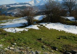 Ardahan’ın Posof ilçesinde yüksek kesimlere yağan kar, yeşil çimenlerle kucaklaşınca ortaya seyre doyulmayan güzellikler çıktı.