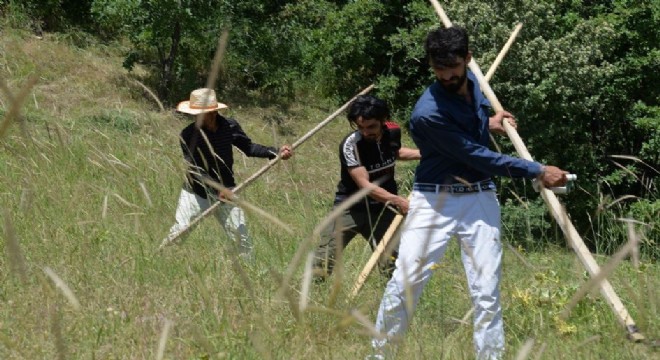 Bingöl’de bir köyde vatandaşlar, imece usulü tırpanla ot biçip hayvanların, kışlık yiyeceklerini şimdiden hazırlamaya başladı.