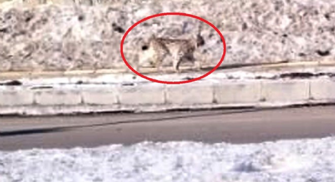 Ardahan kent merkezinde nesli tükenme tehlikesiyle karşı karşıya olan vaşak görüntülendi.