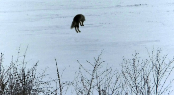 Kars’ta etkili olan kar yağışının ardından aç kalan tilkilerin fare avlaması objektiflere yansıdı.