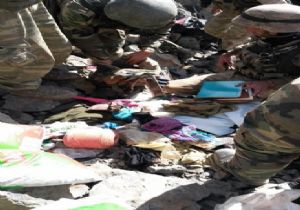 Güvenlik kuvvetlerince açılan ateşlerde mağarada meydana gelen yangın bazı bölümleri tahrip etse de birçok malzeme olduğu gibi ele geçirildi. Mağara ve yakın çevresinde yapılan aramada, 1 Doçka makineli tüfek, 1 Kaleşnikof piyade tüfeği, 1 Biksi makineli tüfek, 8 el bombası (3 savunma tipi, 5 adet Rus tipi), 332 adet Doçka makineli tüfek fişeği, 144 adet bixi makineli tüfek fişeği, 125 adet Kaleşnikof piyade tüfeği fişeği, 1 YAESU telsiz, 1 çuval lamba, 3 adet UPS, 1 adet güneş paneli, 1 adet dürbün, 5 adet pil bloğu, 8 adet şarjör, 1 adet küçük tüplü ısıtıcı, mutfak malzemeleri (5 büyük, 20 küçük tüp, 1 fırın, 3 ocak), 4 adet LCD televizyon (1 salon tipi büyük, 3 orta boy LCD), muhtelif cins ve miktarda erzak (15 çuval patates, 18 çuval pirinç, 15 çuval soğan, 16 çuval şeker, 44 çuval un, 400 kg salça, 9 çuval çay, 45 kg tahin, 100 kg pekmez, 50 kg bezelye, 75 kg reçel, 75 kg zeytin, 50 kg tulum peyniri, 60 kg kuru kayısı, 3 çuval çekirdek) ve ayrıca örgütsel doküman ele geçirildi.