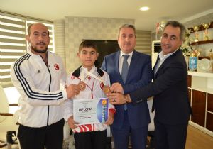 Erzurumlu işitme engelli güreşçi Mehmet Akif Sönmez, Erzurum Gençlik Hizmetleri ve Spor İl Müdürü Fuat Taşkesenligil’i ziyaret etti. Antrenörü İsmail Özkan ve GHSİM Spor Şube Müdürü Güngör Şenses de ziyarette hazır bulundu. Erzurum Genlik Spor Kulübü’nün güreşçisi olan ve Çat’ta ikamet eden Milli güreşçi, İşitme Engelliler Dünya Şampiyonası’ndan çifte madalya ile dönmüştü. İran’da yapılan İşitme Engelliler Dünya Güreş Şampiyonası’nda Türkiye adına mindere çıkan Mehmet Akif Sönmez üçüncü olarak bronz madalya kazanarak göğsümüzü kabartmıştı. 15 ülkeden çok sayıda işitme engelli sporcuyu geride bırakarak üçüncü olma başarısı gösteren Çatlı minik pehlivanı Cumhuriyet altını ile ödüllendiren Gençlik Hizmetleri ve Spor İl Müdürü Fuat Taşkesenligil, işitme engelli pehlivan ile gurur duyduklarını söyledi. Taşkesenligil, “Sporcumuzu bu büyük başarısının ardından karşılayarak kendisine büyük bir moral aşıladık. İnanıyorum ki, Mehmet Akif, bundan sonra daha büyük başarılar elde edecek” dedi.