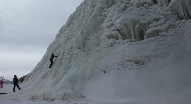 Palandöken Kayak Merkezi’nde oluşturulan buz duvarı, dağcıların gözdesi oldu. Buz duvarına tırmanan dağcıların performansı adeta nefes kesti.