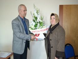 Konuşmaların ardından, Demir tarafından Sabuncuoğlu’na çiçek takdim edildi.