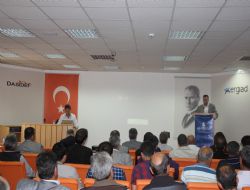 ERGİAD Toplantı Salonunda düzenlenen bilgilendirme seminerine çiftçiler, ERGİAD yetkilileri ve Abalıoğlu Yem Firması Genel Müdür Yardımcısı Yalçın Akhan, katıldı.