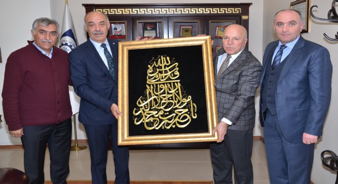 Ziyarette Başkan Sekmen, ETSO Yönetim Kurulu Başkanı Yücelik’e, filografi ile yapılmış Ayet-i Kerime işli bir tablo ve Büyükşehir Belediyesi’nin logosunun yer aldığı seramik bir tabak hediye etti.