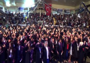 Tören sonunda mezun olan 350 öğrenci sahne önünde kep fırlatarak mezuniyet coşkusunu doyasıya yaşadılar.