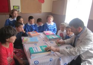 Eğitim Bir Sen 2 nolu Şube Başkanı Mustafa Karatay ve sendika üyeleri, Adaçay İlköğretim Okulu öğrencilerine kırtasiye yardımında bulundular.