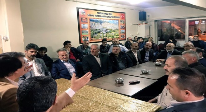 Milletvekili Aydemir’in Erzurum çalışmaları kapsamındaki ilk etkinliği Tortum Aksu Derneği buluşması olarak gerçekleşti.  Derneği, ‘etkin olmanın, STK olarak toplumsal fayda adına gayret etmenin örnek kuruluşu’ olarak niteleyen Milletvekili Aydemir,  yaptığı değerlendirmede, İstişare zemini, tefekkür, teşekkür ve talep bağlamında uzun bir zamanı ifade etti. Tortum Aksulu dadaşların AK Parti’ye  minnet ve itimatları zirvede. Bizim de onlara muhabbetimiz öyle. ‘ ifadelerine yer verdi.