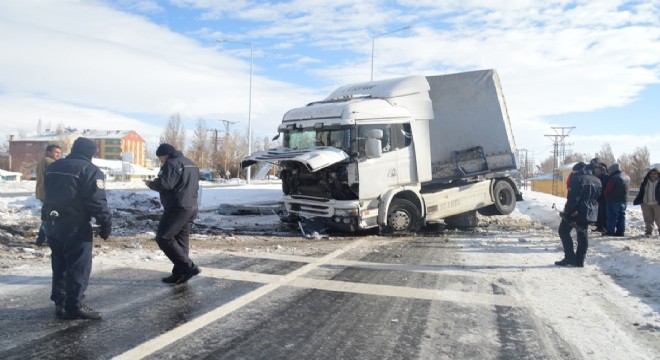 Ağrı'nın Eleşkirt ilçesinde aşırı buzlanmadan dolayı 2 TIR'ın ayni istikamette seyir halinde iken çarpışması sonucu meydana gelen trafik kazasında sürücülerden bir yaralandı.