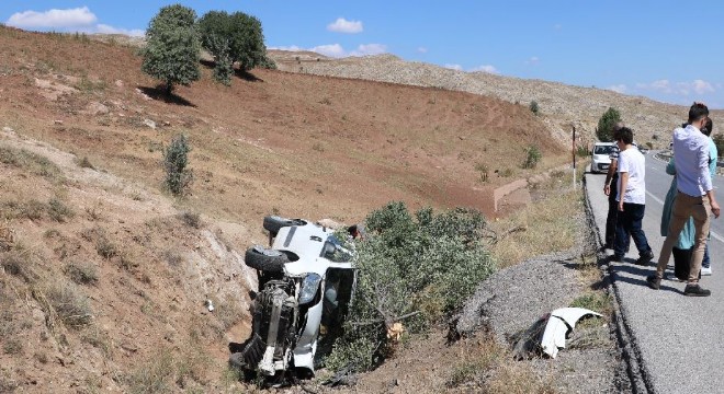 Erzurum- Sivas yolunda şarampole devrilen aracın sürücüsü, emniyet kemeri sayesinde kazayı yara almadan atlattı.