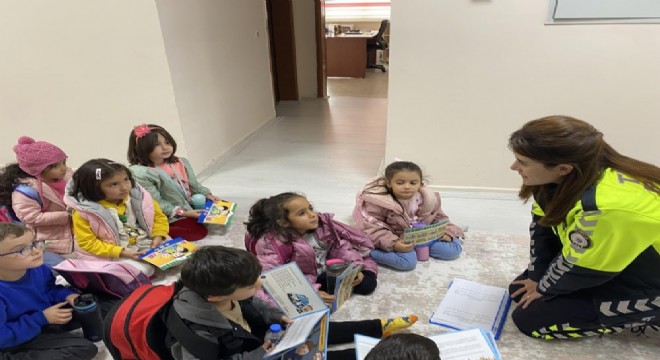 Erzurum polisi çocukların trafik konularında bilinçlenmesi amacıyla okullardaki eğitimlerini sürdürüyor.