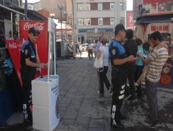 Kentte vatandaşların en yoğun olduğu Cumhuriyet Caddesi üzerinde stant açan polisler hırsızlık konusunda uyarıcı bilgilerin yer aldığı broşürleri vatandaşlara dağıttılar.