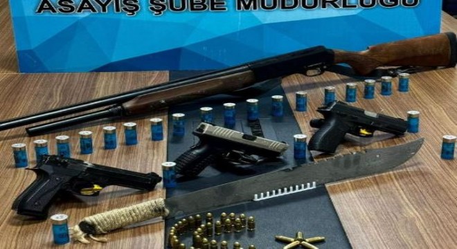 Ele geçirilen silahlar muhafaza altına alınırken, gözaltına alınarak İl Emniyet Müdürlüğü’ne getirilen şüphelilerin emniyetteki işlemleri devam ediyor.