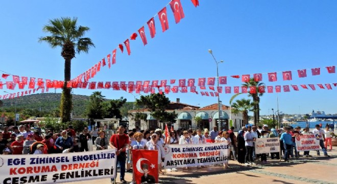 Türkiye'nin çeşitli il ve ilçelerinden gelerek Çeşme'de kamp yapan engelliler, farkına varılmak için Çeşme'de yürüdü.