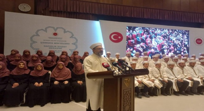 Diyanet İşleri Başkanı Ali Erbaş, Çankaya Belediyesi tarafından düzenlenen “Çankaya Hafızlık İcazet Merasimi"ne katıldı. Erbaş, Hz. Muhammed’in vasiyetinde Kur'an-ı Kerim’i ve peygamber sünnetini emanet bıraktığını ifade ederek, “İşte hafızlarımız, Allah Resulü Efendimiz, 23 sene boyunca Kur’an ile nasıl insanlığı karanlıklardan aydınlığa çıkarmak için üzerinde vazife olan şahitliğini, müjdeciliğini, uyarıcılığını, davetini, irşadını nasıl yaptıysa bu emanet bizim üzerimizde şimdi. Allah Resulü'nün varisleri üzerinde, Allah Resulü'ne varsa olmaya en çok hak eden de hafızlardır. Tebrik ediyorum hafızlarımızı. Allah Resulü'ne varis olmaktan daha büyük bir unvan var mı yeryüzünde. Dünyevi unvanların hepsini bir kenara koyun hafız olmak, hafız-ı kelam olmak işte unvanların en büyüğü. Hafızlarımız bu unvana sahip oldular” şeklinde konuştu.