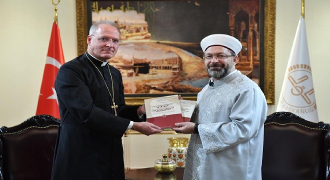 Diyanet İşleri Başkanı Prof. Dr. Ali Erbaş, Vatikan’ın Ankara Büyükelçisi Paul Fitzpatrick Russell’i kabul etti. Görüşmede Avrupa’da yükselen İslamofobia’nın ortadan kaldırılması gerektiğini dile getiren Erbaş, “Bizim en çok arzu ettiğimiz şey, özellikle Avrupa ülkelerinde İslamofobia’nın bir şekilde ateşinin düşürülmesi gerekiyor. Hep birlikte İslamofobia’nın ortadan kaldırılması noktasında çalışmamız gerekiyor” şeklinde konuştu.
