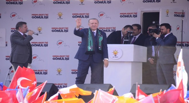 Cumhur ittifakının karşısına içinde terör örgütünün siyasi uzantılarının da olduğu dörtlü bir çetenin çıkarıldığını aktaran Cumhurbaşkanı Erdoğan, bu dörtlü çetenin seçim stratejileri ve ana listelerinin Pensilvanya ile terör baronlarının yönettiğini ifade ederek, “Bizi proje terör örgütleri üzerinden döviz kuru üzerinden sindirmeye çalışanlar hedeflerine ulaşamadılar. 31 Mart seçimleri bu kesimleri yeniden heveslendirmişe, bitlerini yeniden kanlandırmışa benziyor. Millet ve memleket düşmanlarının yeni bir oyun içinde olduğunu görüyoruz. 24 haziranda başlattıkları ancak muvaffak olamadıkları projeyi tekrar piyasaya sürdüler. Cumhur ittifakının karşısına içinde terör örgütünün siyasi uzantılarının da olduğu dörtlü bir çete çıkarttılar, kumandasını da Kandil ve Pensilvanya’ya verdiler. Dörtlü çetenin seçim stratejilerinden ana listelerine kadar tüm süreci Pensilvanya’daki şarlatan ve kandildeki terör baronları yönetiyor. Neden CHP HDP ile işbirliği yapıyor? HDP’nin arkasında kimleri var? Terör örgütü var. Benim Denizlili kardeşim bunlara pirim vermez. Gelin sandıkta bunları gömelim” diye konuştu.