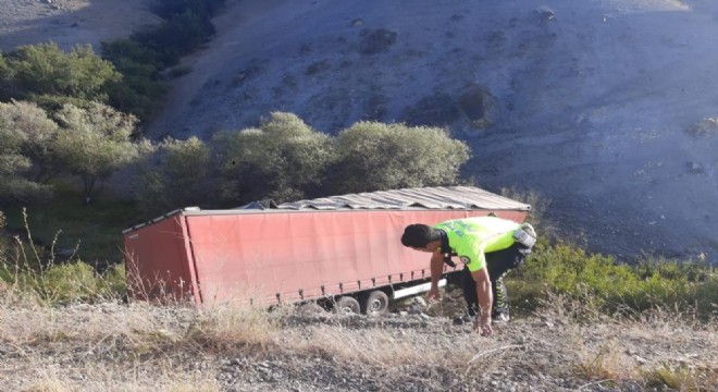 Erzincan yolunda tır şarampole devrildi