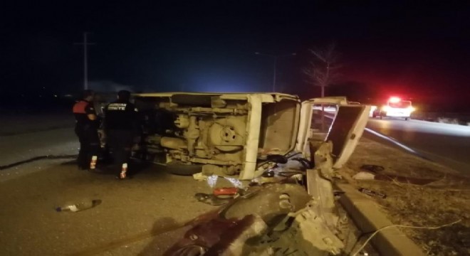 Erzincan’da orta refüjdeki elektrik direğine çarpan minibüs yan yattı. Kazada 1’i çocuk 4 kişi yaralandı.