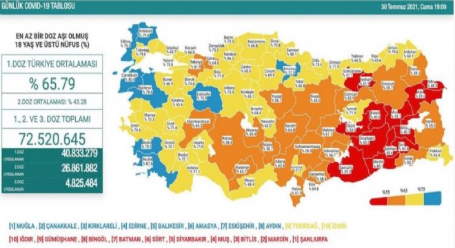 En az bir doz aşı olmuş 18 yaş üstü nüfus oranları açıklandı. Erzurum’da ...
