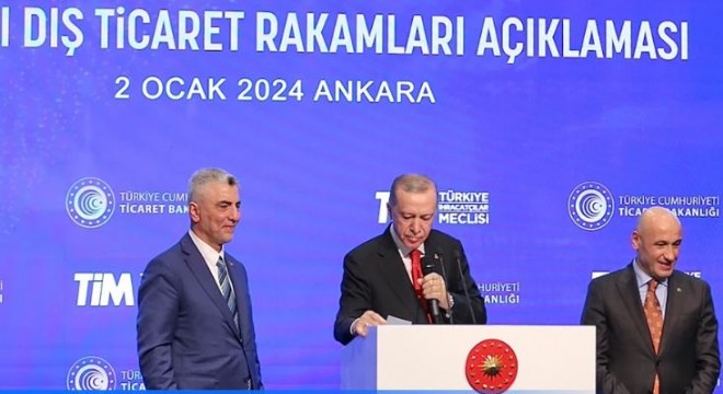 Cumhurbaşkanı Recep Tayyip Erdoğan; 2023 yılı ihracat verilerini Cumhurbaşkanı Yardımcısı Cevdet Yılmaz, Ticaret Bakanı Ömer Bolat, Hazine ve Maliye Bakanı Mehmet Şimşek, Çalışma ve Sosyal Güvenlik Bakanı Vedat Işıkhan, Sanayi ve Teknoloji Bakanı Mehmet Fatih Kacır ile Ulaştırma ve Altyapı Bakanı Abdulkadir Uraloğlu'nun da katıldığı toplantıyla Ankara'da açıkladı.