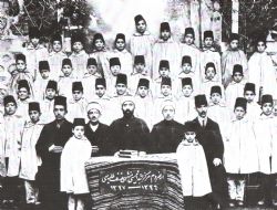 Erzurum Merkez Mekteb-i İbtidaisi öğrencilerinin birlikte çektirdiği bu fotoğraf, dönemin öğrenci kıyafetlerini de göstermesi bakımından ayrı bir anlam taşırken, öğrenciler, fesleri ve omuzlarını örten pelerinleriyle dikkat çekiyor. Fotoğrafta yer alan İbtidai mektebinin öğrencilerinin kimler oldukları bilinmezken, torunlarının halen daha Erzurum’da hayatta olabilecekleri tahmin ediliyor.