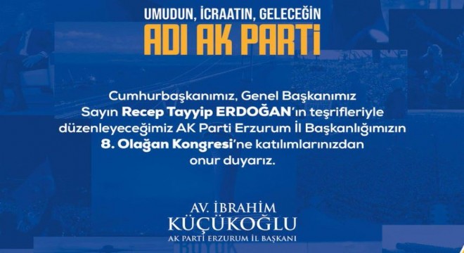 Küçükoğlu paylaşımında, ‘Dünya liderimiz, Cumhurbaşkanımız Sayın Recep Tayyip Erdoğan, 14 Aralık Cumartesi günü Erzurum’umuza teşrif ediyor. Saat 13.00’te Yakutiye Buz Hokeyi Salonu’nda gerçekleşecek bu anlamlı buluşmada, Cumhurbaşkanımızı hep birlikte coşkuyla karşılayacağız. Tüm hemşehrilerimizi, Erzurum’un her köşesinden bu tarihi ana şahitlik etmeye davet ediyoruz. Hep birlikte güçlü bir şekilde Cumhurbaşkanımızın yanında olduğumuzu göstereceğiz. Erzurum, Sayın Cumhurbaşkanımızın liderliğinde daha güçlü yarınlara emin adımlarla ilerlemeye devam edecektir. ‘ ifadelerine yer verdi