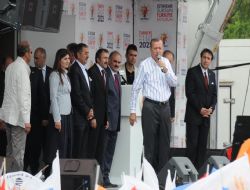 Dokuzuncu Cumhurbaşkanı Demirel'in resminin olduğu afişi göstererek, "Şurada gördüğünüz zat, CHP'nin iktidarlarında süt veren ineğin sütü kurur diyordu, şimdi övüyor" diyen Başbakan Erdoğan, "Eğer yorduysam sizi, bırakayım. Havada fena değil aslında. Sivas'ta, Gaziantep'te 36 dereceydi hava maşallah. Onlar da Erzurum gibi muhteşemdi. Erzurum'da 5, 6, 7 katlı binanın bodrumuna inip kömür alıyordun. Koku, kül, değerli kardeşlerim bir odayı ıstırsın, diğerleri ısınmaz. Şimdi kombi. Bas düğmesine, bütün daire ısınıyor. Her taraf tertemiz sıcak suya ulaşıyorsun. Helga buna layıktı da bugüne kadar benim Ayşe, Fatma bacım buna layık değil miydi. Sayın Bahçeli, sen bunu görmedin mi? Haberin yok muydu? Nasıl olsun ki koskoca Başbakan Yardımcısı'nın gittiği ülke sayısı parmak sayısını geçmez. Bunlar, devlet adamı olacak. Ekonomideki verileri eleştiren Sayın Bahçeli dün 'Vatandaş senin cebine ne geliyor' diyor. Her şey vatandaşın cebine girenle ölçülmez. Bu ülke ekonomisidir. Türkiye güçlenirken benim insanımda güçleniyor. Ben sana burdan soruyorum. Senin döneminde asgari ücret 184 liraydı, şimdi 630 lira. Senin asgari ücretinle mi daha fazla ekmek alınıyordu yoksa şimdi mi alınıyor. Senin döneminde daha fazla ekmek, çay, şeker alınıyordu ise ben pazardan önce adaylıktan çekiliyorum, Sen çekiliyor musun? Kılıçdaroğlu çekiliyor musun? Bahçeli, biraz sıkıl. Bahçeli'yle Kılıçdaroğlu, el ele vermişler. IMF'ye olan borcu onlar artırmıştı. Biz bunu 5 milyar dolara indirdik. Şimdi bunlar milliyetçi değil mi? Merkez Bankası'nın kasasında 27.5 milyar dolar vardı, şimdi kasada 97 milyar dolar var. Sayın Bahçeli nerde geziyorsun. Erzurum'un, MHP'ye gönül veren kardeşlerime sesleniyorum. Rakamlarla konuşuyorum. Bireysel de Türkiye Cumhutiyeti'ni güçlendirme noktasında da konuşuyorum. Gelin ferasetinizi ortaya koyun ve oyumuzu buna göre verelim" diye konuştu.