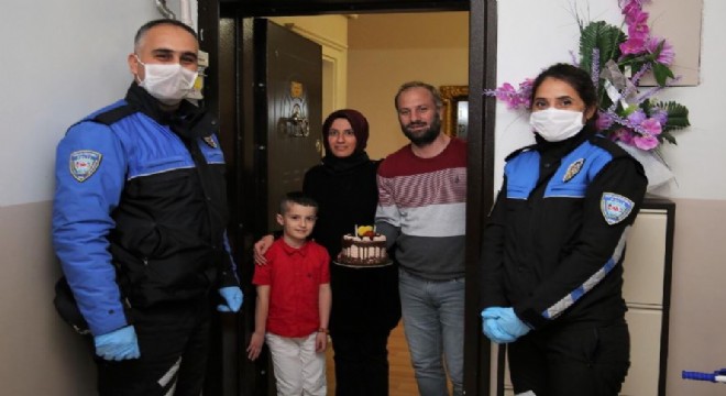 Erzurum’da polisler 23 Nisan’da doğan çocukların doğum gününü evlerine kadar gidip, pasta sürprizi ile kutladılar.