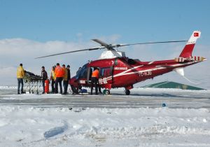 Erzurum'da sağlık ekipleri yolu kapalı köy ve mezralardan 17 günde 38 hastayı kar üstü araç, paletli ambulans ve ambulans helikopterle alarak kent merkezindeki hastanelere taşıdı.