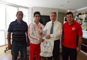 Erzurum Gençlik Hizmetleri ve Spor İl Müdürü Fuat Taşkesenligil, Erzurum’da yapılan 1. Uluslararası Cumhurbaşkanlığı Kupası Boks Turnuvası’nda Türkiye’ye 49 kiloda altın madalya kazandıran Burak Yücel’i kutladı. Antrenörler Mustafa Kalkan ve Muhsin Köylü’nün öğrencisi olan Erzurum Gençliksporlu Burak Yücel’in elde ettiği başarının kendilerini gururlandırdığını ifade eden Taşkesenligil, “Burak, Cumhurbaşkanlığı boks kupasında altın madalya kazanarak bizlerin göğsünü kabartmıştır. Kendisini ve hocalarımızı kutluyorum” dedi.