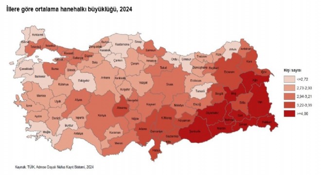 Erzurum’da 2008 yılında 5 kişi olan ortalama hane halkı büyüklüğü son beş yılda ciddi bir düşüş gösterdi. İlde 2024 yılı kaydında ortalama hane halkı büyüklüğü 3.41 olarak açıklandı. Ülkede ise 2008 yılında 4 olan ortalama hane halkı büyüklüğü 2024 yılında 3.11 kişiye geriledi.