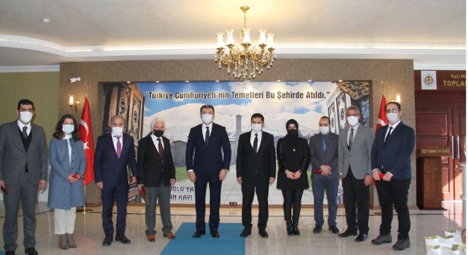 Pandemi nedeni ile kısa süreli bir kutlama programı düzenlendikten sonra İl Milli Eğitim Müdürü Salih Kaygusuz ve beraberinde öğretmenlerden oluşan bir heyetle Erzurum Valisi Okay Memiş’i makamında ziyaret etti.