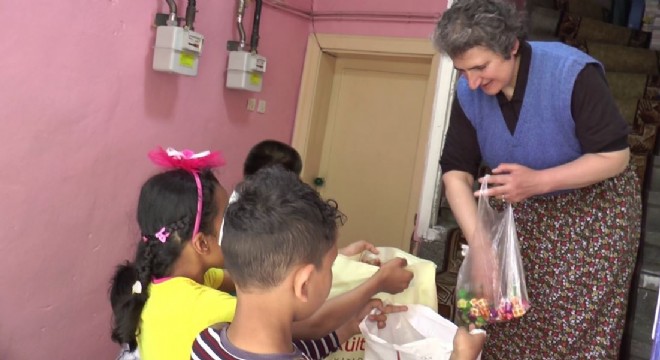 Çocukları karşılayan aileler, onlara hazırladıkları fındık, fıstık ve cevizlerden vererek, çocukların bayramını kutladılar.