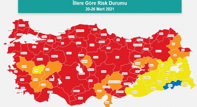 Edirne, Kırkkale, İstanbul, Tekirdağ, Çanakkale, Balıkesir, İzmir, Aydın, Muğla, Bursa, Yalova, Kocaeli, Sakarya, Bilecek, Kütahya, Eskişehir, Düzce, Bolu, Antalya, Konya, Isparta, Karaman, Mersin, Niğde, Aksaray, Nevşehir, Kayseri, Ankara, Kırıkkale, Yozgat, Çankırı, Kastamonu, Karabük, Bartın, Çorum, Sinop, Amasya, Tokat, Samsun, Sivas, Ordu, Malatya, Osmaniye, Kilis, Gaziantep, Adıyaman, Elazığ, Erzincan, Giresun, Trabzon, Gümüşhane, Bayburt, Rize, Erzurum, Artvin, Ardahan, Iğdır kırmızı listede yer aldı.