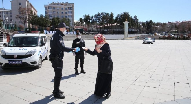 Erzurum’da polis maske dağıttı
