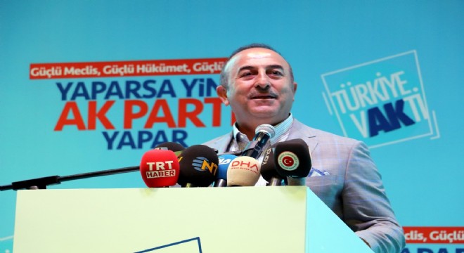 Türkiye için hizmet yapmaya devam edeceklerini ifade eden Çavuşoğlu, “Tekrar güçlü bir iktidarla iş başına geçince Türkiye için hizmet edeceğiz. Türkiye için yaptıklarımız son 3 yıla sığdırılamaz. 79 yılda yapılamayan, hayal edilemeyen, hayatta olmaz denilen projeleri hayata geçirdik. 16 yılın özeti şudur. 16 yılda karşılaşmadığımız zorluk ve tehdit kalmadı. En son 15 Temmuz. Türkiye’ye yönelik saldırılar, projeler, 15 Temmuz 2016’da sonlandırdık. Milletimiz ve liderimiz sayesinde, milletçe bu saldırıyı yendik. Taarruzlar bununla sınırlı kalmadı. Bir taraftan terör devleti yaratma çabaları. İçeride nasıl inlerine girdiysek, sınır ötesinde de bu hainlerin inlerine girdik. 16 yılda bunların hepsini irade, cesaret ve dik duruşla üstesinden geldik. Bu mücadeleleri yaparken ülkemiz içim çok büyük hizmet yaptık. Dünyada gerçekleştirilmekte olan mega projeleri tek başına Türkiye gerçekleştirdi. Recep Tayyip Erdoğan gibi bir lideri olan Türkiye’ye bunlar yaraşır. Şimdi sıra bu sağlam temeller üzerinde Türkiye’yi hak ettiği hedeflere ulaştırmak” diye konuştu.