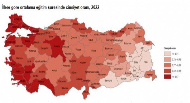 Kadınların ortalama eğitim süresinin, erkeklerin ortalama eğitim süresine oranını ifade eden "cinsiyet oranı" 2011 yılında 0,78 iken, bu oran her yıl artış göstererek 2022 yılında 0,84 oldu.