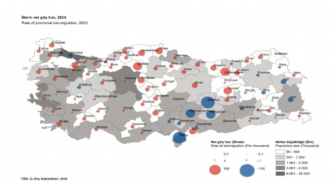 İstanbul 581 bin 330 kişi ile en çok göç veren il olurken, onu 208 bin 740 kişi ile Ankara ve 164 bin 247 kişi ile Hatay takip etti. En az göç veren iller ise sırasıyla 6 bin 811 kişi ile Ardahan, 7 bin 234 kişi ile Tunceli ve 7 bin 604 kişi ile Kilis oldu.