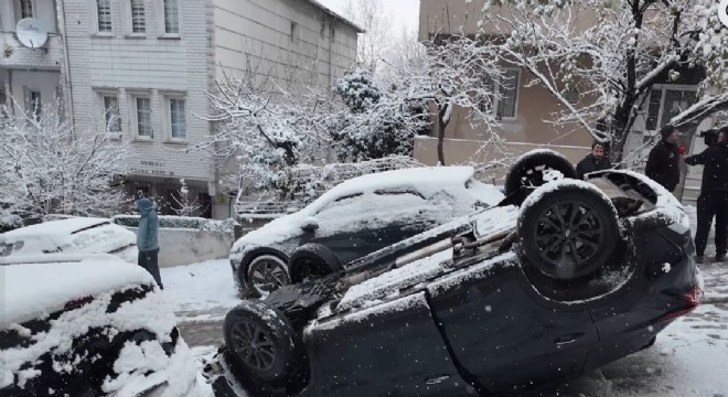 Erzincan-Sivas karayolu Kızıldağ Geçidinde buzlanan yolda kayan minibüs, ...