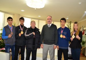 Türkiye Şampiyonu olan Köksal Kaya ile yine Türkiye Şampiyonu olan ikizi Soner Kaya ve bayanlarda Türkiye şampiyonluğunu kazanan Dilara Körpeş ile Giresun’da yapılan Uluslar arası Open Turnuvasında ikinci olarak gümüş madalya kazanan Mustafa Batuhan Yardımcı, Taekwondo Federasyonu Ümitler Teknik Kurul Üyesi Kemal Yıldıran Yönetiminde Erzurum Gençlik Hizmetleri ve Spor İl Müdürü Süleyman Arısoy’u ziyaret ederek başarı öyküsünü anlattılar. Arısoy, Milli taekwondoculara bundan sonraki müsabakalar için başarı diledi. Taekwondo Federasyonu Ümitler Teknik Kurul Üyesi Kemal Yıldıran, öğrencilerinin başarıdan başarıya koştuğunu belirterek, daha fala destek verilmesi halinde büyük hedefleri yakalayacaklarını söyledi. Yıldıran, “Köksal Kaya, Soner Kaya, Dilara Körpeş ve Mustafa Batuhan Yardımcı 2013 yılında başarılı bir performans göstererek, göğsümüzü kabarttı. İnanıyorum ki, bundan sonra daha da başarılı olacaklar” dedi.