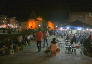 Ramazan ayında orucunu açan Erzurumlular teravih namazından sonra tıklım tıklım dolan caddede ailece gezen vatandaşlar, dev semaverlerde çay keyfini yaşamadan evlerine gitmiyor.
