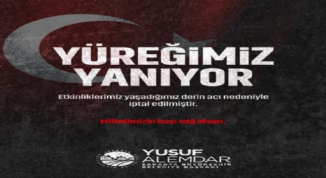 Sakarya Büyükşehir Belediyesi tarafından yapılan açıklamada, "Pençe-Kilit Harekat bölgesinde sürdürülen arama faaliyetleri sırasında, metan gazına maruz kalmaları sonucu 12 kahraman Mehmetçiğimiz şehit düşmüştür. Vatanımızın huzuru ve güvenliği uğruna canlarını feda eden aziz şehitlerimize Allah’tan rahmet, kederli ailelerine ve aziz milletimize başsağlığı diliyoruz. Büyükşehir Belediyesi olarak düzenlenmesi planlanan tüm sosyal, kültürel ve sanatsal etkinlikleri ikinci bir duyuruya kadar iptal etme kararı aldık. Milletimizin başı sağ olsun" ifadelerine yer verildi.
