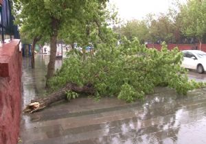 E.MEHMET YILMAZ-ERZURUM (İHA) - Erzurum’da etkili olan yağmur ve fırtına hayatı olumsuz etkilerken, şehir merkezinde bulunan ağaçların devrilmesiyle trafik lambaları ve bir otomobil zarar gördü.